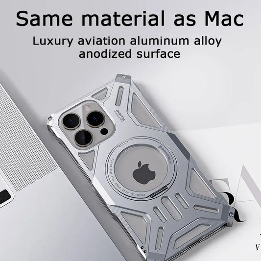 Luxury Metal Hollow Heat-Absorbing Phone Case for iPhone 15 14 13 Pro Max with Aluminum Magnetic Holder